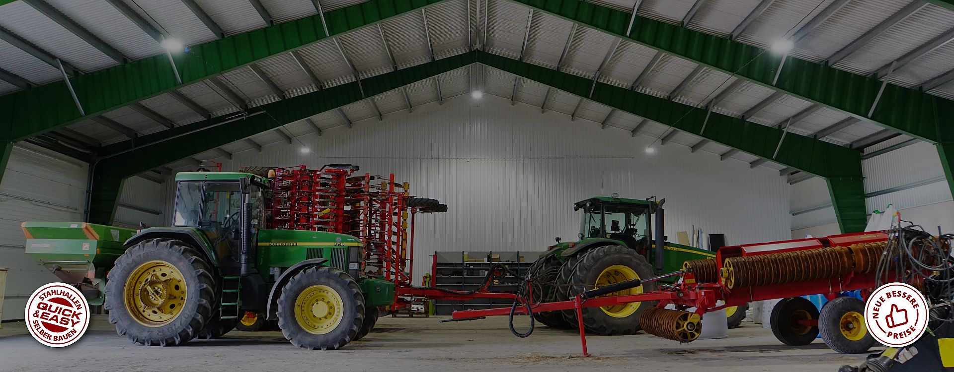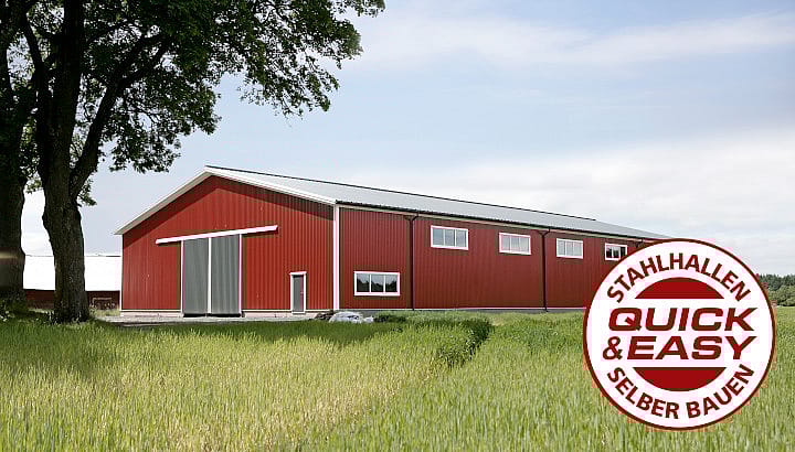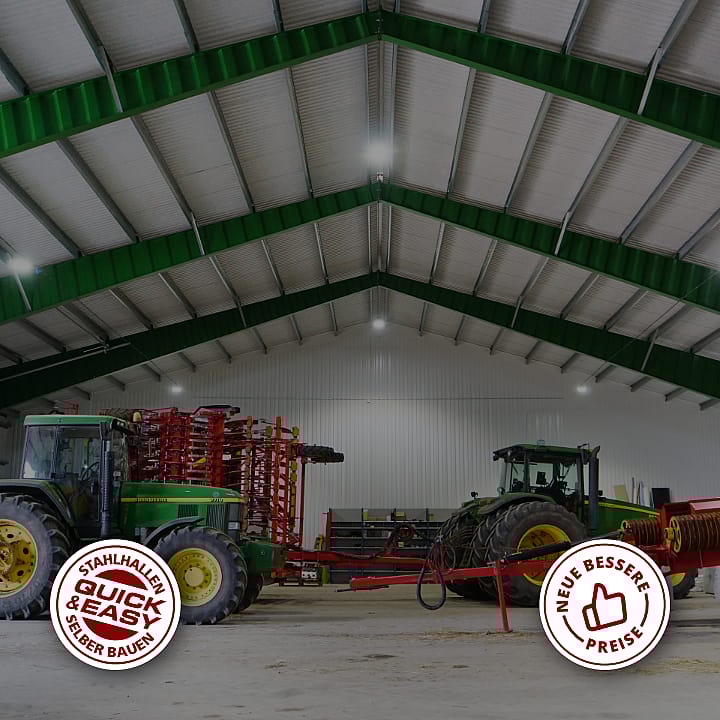 In unserem Angebot finden Sie auch eine finanziell vorteilhafte Produktlinie von QUICK & EASY-Hallen. Dabei können Sie noch mehr sparen und den gesamten Bauprozess beschleunigen, sodass Sie innerhalb von 8 Wochen nach Beauftragung schon die aufgestellte Tragkonstruktion sehen können.