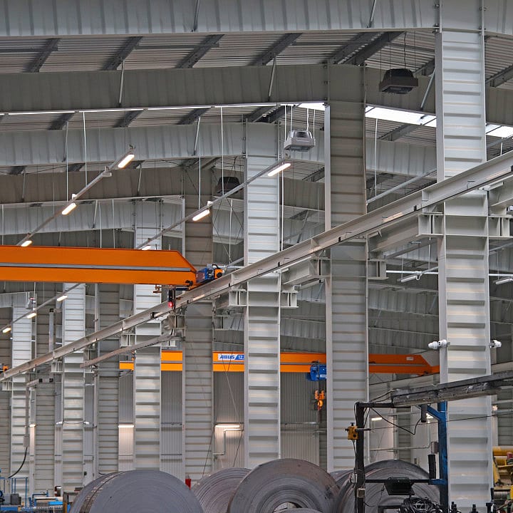 Unsere langfristigen Erfahrungen ermöglicken uns rationelle und einzigartige Industribauen zu bauen mit Vorbereitung der Baustelle zum beispiel für Brückenkräne, Zwischengeschoss, oder Büroräume Sonderlager.