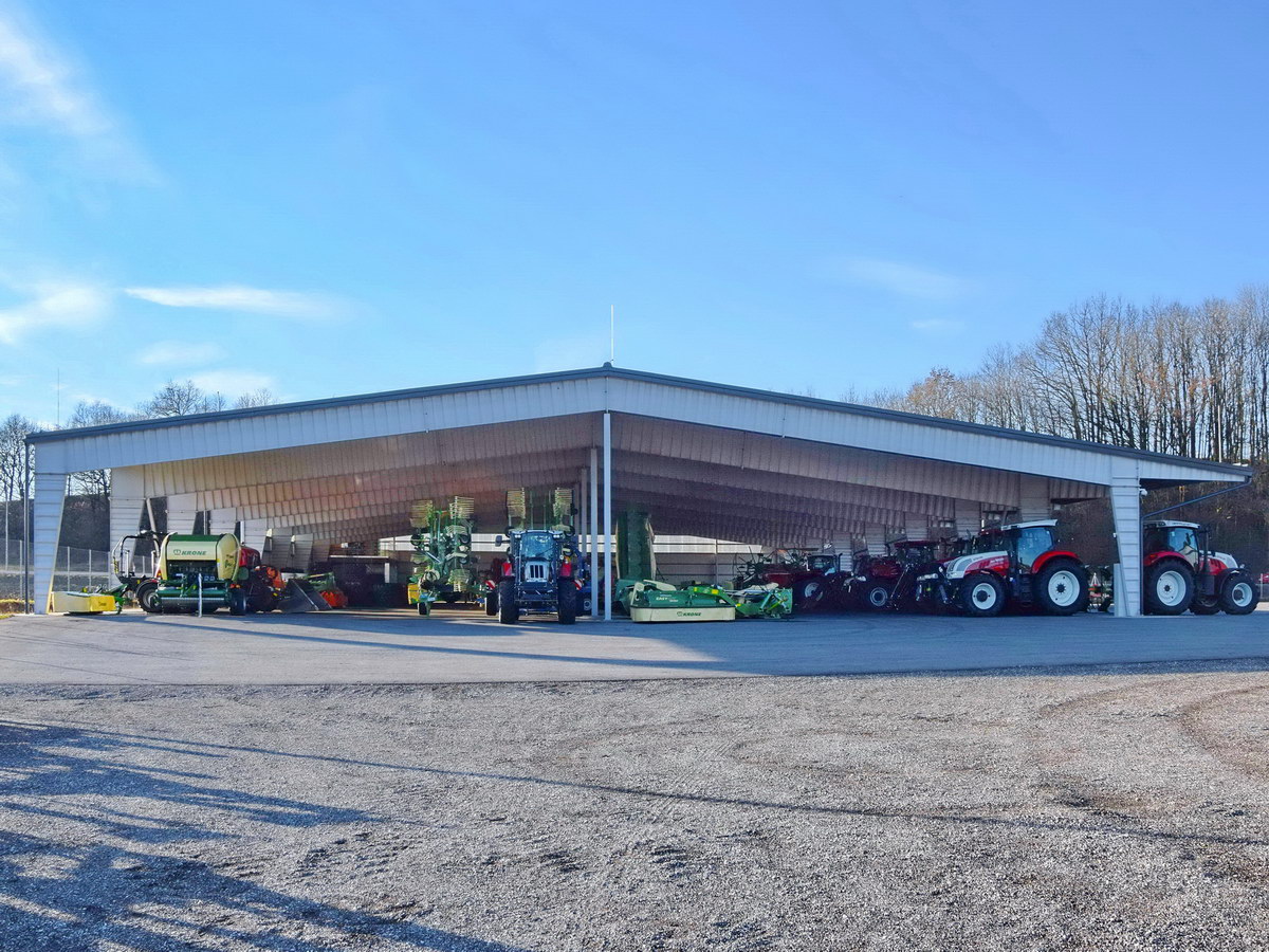 Überdachung für Landmaschinen, Aschbach-Markt voriges matches nächstes of Ein kostenloses Angebot erhalten Fakten Wandprofil BPE 18 Dachprofil Super 40 Art der Nutzung Büros und Verkaufshallen Länge 56 m Breite 36 m Höhe 5 m Fläche 2016 m² Isoliert Nein Projektdaten Projektnummer 153053 Land Österreich Gemeinde Aschbach-Markt Drucken